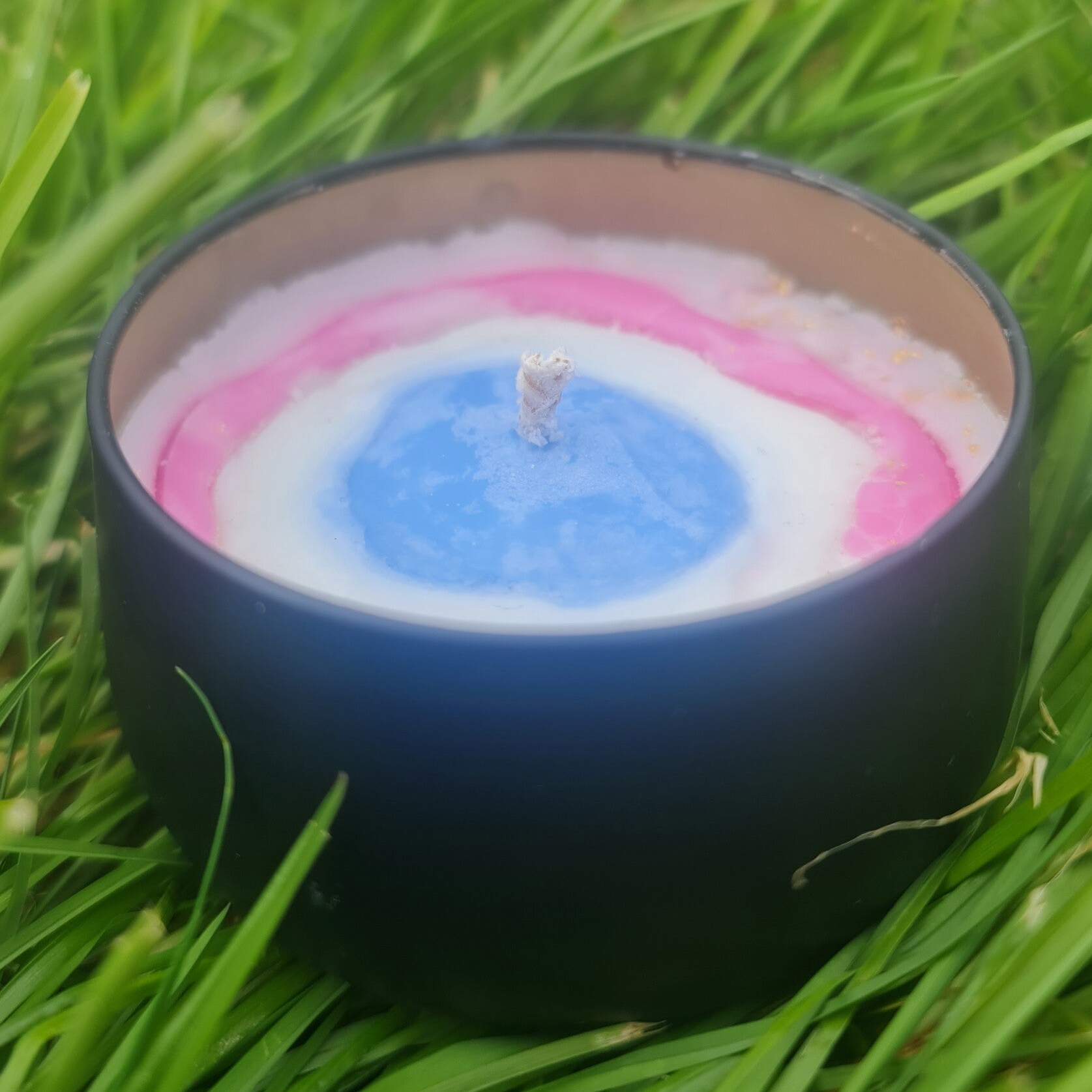 This candle has a geometric pattern and has a scent of Blackcurrant and Agarwood. The candle is topped with gold leaves. It has a height of 4cm and a width of 6.5cm.
